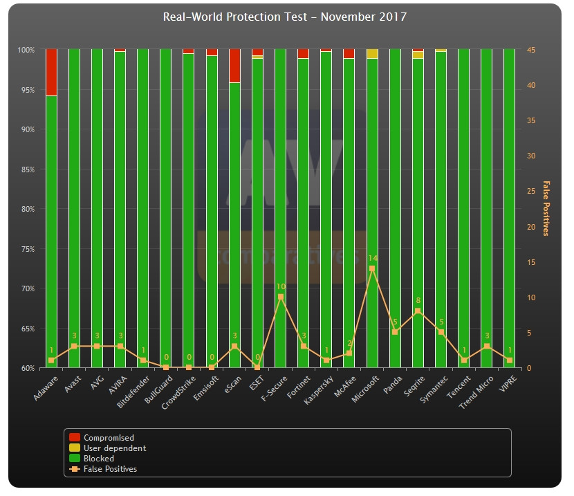 Sur le pied de guerre, les éditeurs de sécurité ont considérablement renforcé leurs technologies de détection ces dernières années. Les résultats des laboratoires de tests indépendants AV Comparatives et AV Test montrent que la plupart des suites de sécurité sont désormais au coude à coude avec un taux de détection identique ou très proche. Dans ce domaine, les éditeurs BitDefender, Trend Micro, Kaspersky et McAfeese distinguent toutefois en obtenant les meilleures notes dans les deux laboratoires.Les tests réalisés entre les mois d'octobre et novembre 2017 sur les dernières versions des antivirus prennent notamment en compte le taux de détection de différents types d'attaques (exploits zero-day, ransomwares...), l'impact sur les performances du système, l'interface et l'ergonomie, ainsi que le nombre de faux positifs (blocages de programmes inoffensifs).