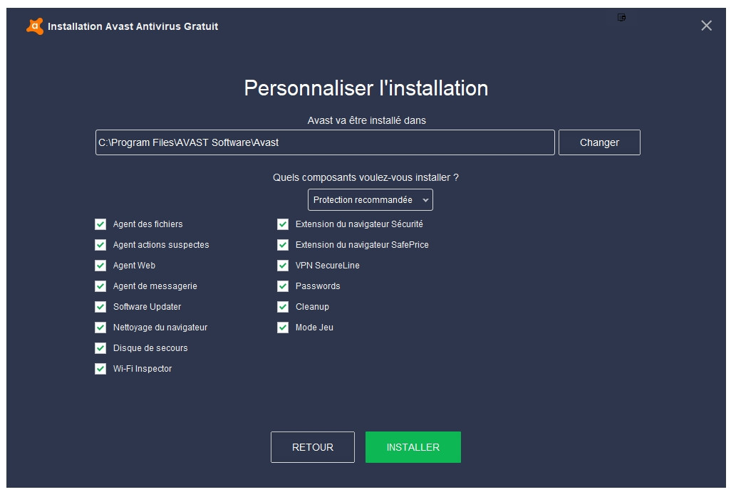 Les suites antivirus disposent généralement d'une seule et même interface pour contrôler l'ensemble de leurs fonctionnalités. Au quotidien, une interface utilisateur de qualité facilite grandement la gestion de la sécurité d'un ou plusieurs appareils. Dans ce domaine, il existe de grandes disparités d'une solution à l'autre tant en termes de simplicité d'utilisation, que d'ergonomie et d'accès à des réglages avancés.Du côté des gratuits Avast et Windows Defender se distinguent avec une interface moderne et intuitive pourvue de menus bien agencés. Malgré sa richesse fonctionnelle, Avast demeure accessible au plus grand nombre grâce à son ergonomie bien pensée et des fonctions clairement détaillées. Mention spéciale pour son écran d'installation qui permet de sélectionner les fonctions une à une en amont.