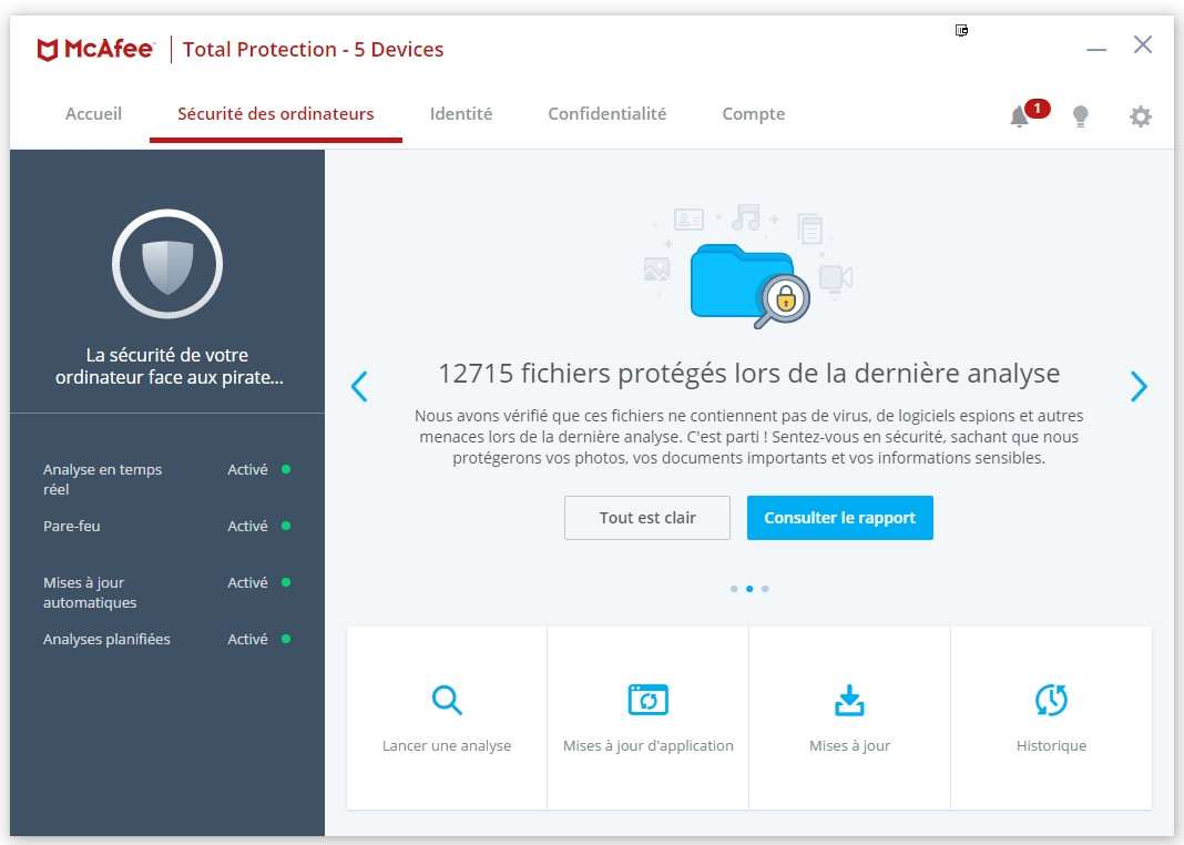 McAfee rate complètement le coche avec sa nouvelle interface à l'ergonomie confuse et brouillonne. Malgré une refonte complète esthétiquement réussie, l'éditeur américain qui s'adresse essentiellement aux familles et aux néophytes ne parvient pas à proposer un agencement de menu cohérent et simple. L'éditeur affiche par ailleurs des informations pas toujours utiles qui portent elles aussi à la confusion.