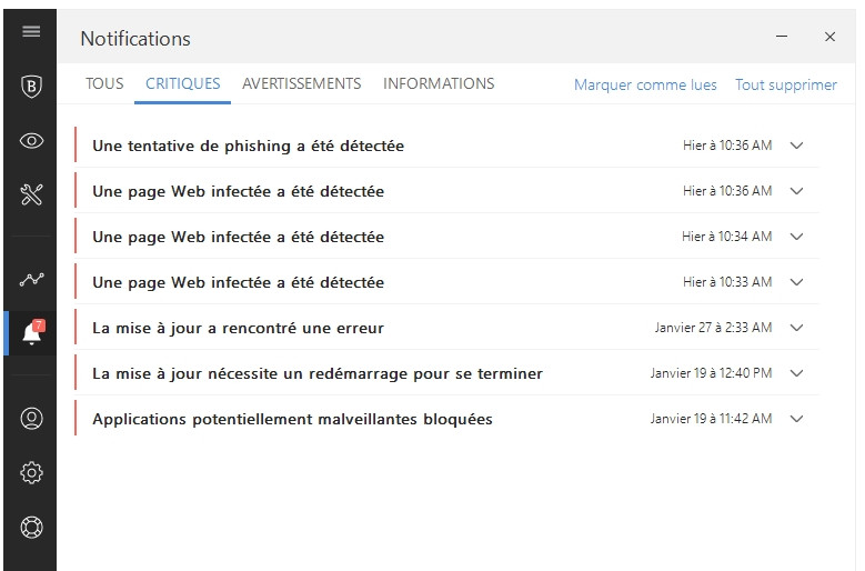 Malgré une approche différente de celle des antivirus traditionnels, Malwarebytes Premium assure l'une des protections les plus fiables du moment. Dépourvue de toute fonction additionnelle, elle intègre quatre couches de protection pour protéger les utilisateurs contre toutes les formes de menaces connues et inconnues. C'est une solution particulièrement légère qui s'adresse plutôt aux utilisateurs experts en quête de performances. Un must.