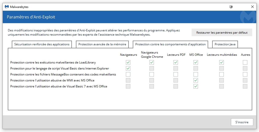 Les cybercriminels profitent des vulnérabilités des logiciels connus et légitimes tels que Java, Flash, Microsoft Office, etc. pour infecter les systèmes et diffuser leurs malwares. C'est la raison pour laquelle, il est très important de toujours tenir votre système et vos logiciels à jour. Les suites de sécurité payantes recherchent automatiquement les vulnérabilités en analysant les mises à jour manquantes, mais aussi les mots de passe système non sécurisés ou encore les réseaux sans fil mal protégés. En cas de problème, le logiciel vous alerte et vous indique les mesures à prendre.Bouclier anti-ransomwares
