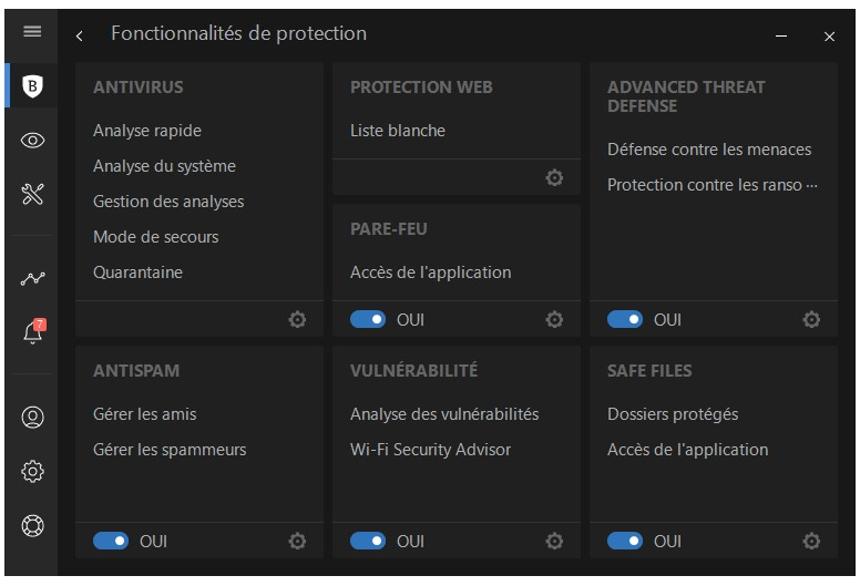 De nombreuses options de protection demeurent enfin réservées aux suites payantes : support client, contrôle parental, protection bancaire, filtre antispam, pare-feu avancé, VPN, etc. Des points importants à prendre en compte en particulier pour les internautes les moins avertis qui recherchent une protection complète. À noter que tous les éditeurs proposent une version d'évaluation permettant d'essayer gratuitement leurs produits.